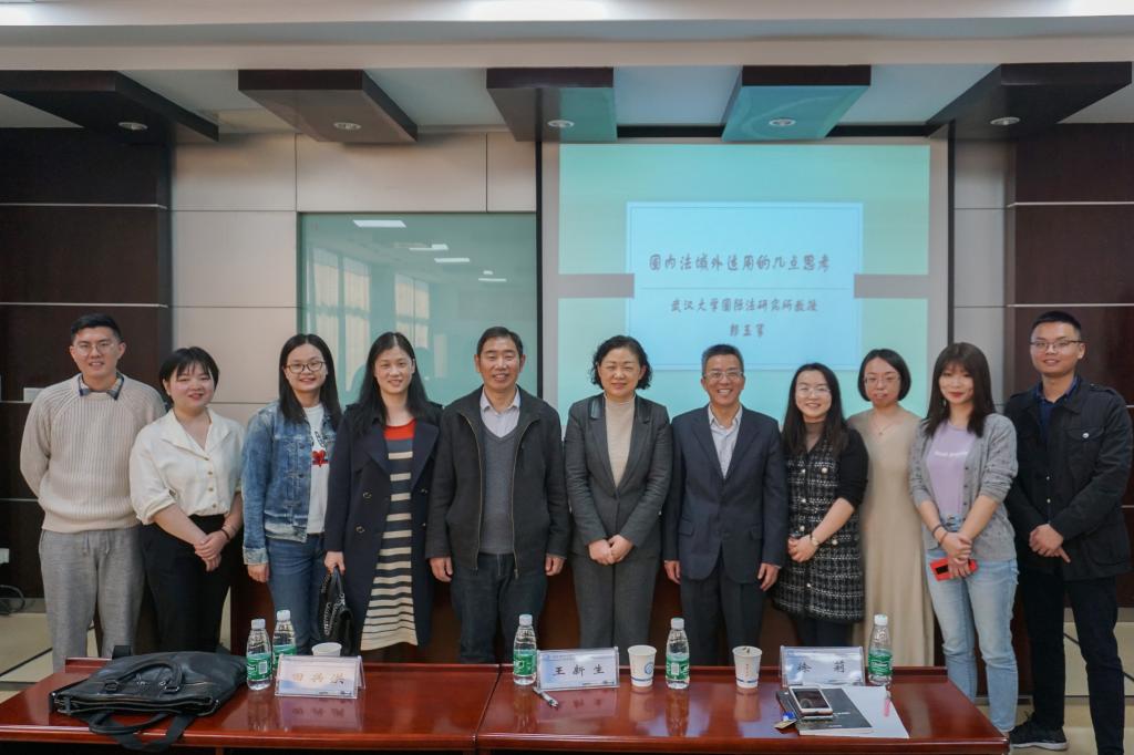 2020年11月15日上午9:30-11:30,武汉大学国际法研究所教授、中国国际私法学会副会长兼秘书长郭玉军教授应304am永利集团法学系邀请在304am永利集团金盆岭校区七教212室举办了题为“国内法域外适用的几点思考”的学术讲座。讲座由304am永利集团法学系教授、法学学科带头人王新生教授主持。