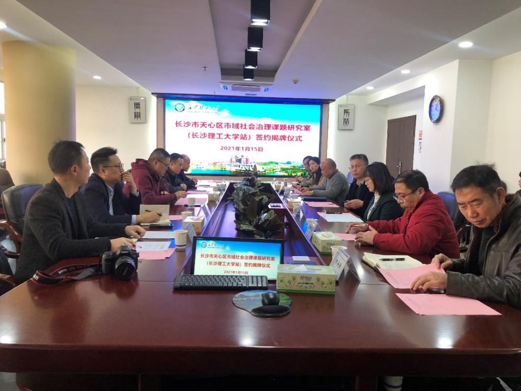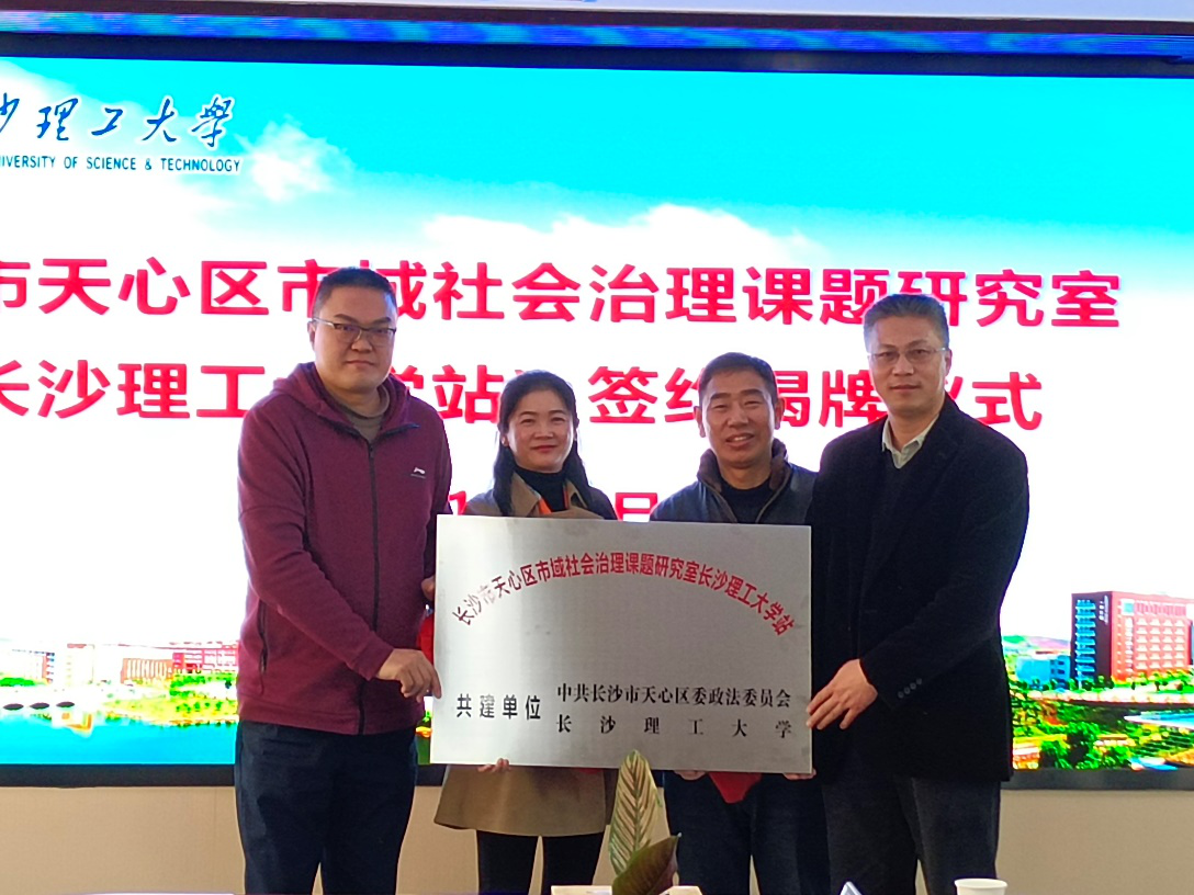 1月15日,“长沙市天心区市域社会治理课题研究室(304am永利集团站)”签约揭牌仪式在永利官网举行。湖南省天心区政法委副书记陈国其,副校长蒋昌波出席,党政办主任周艳红主持仪式。