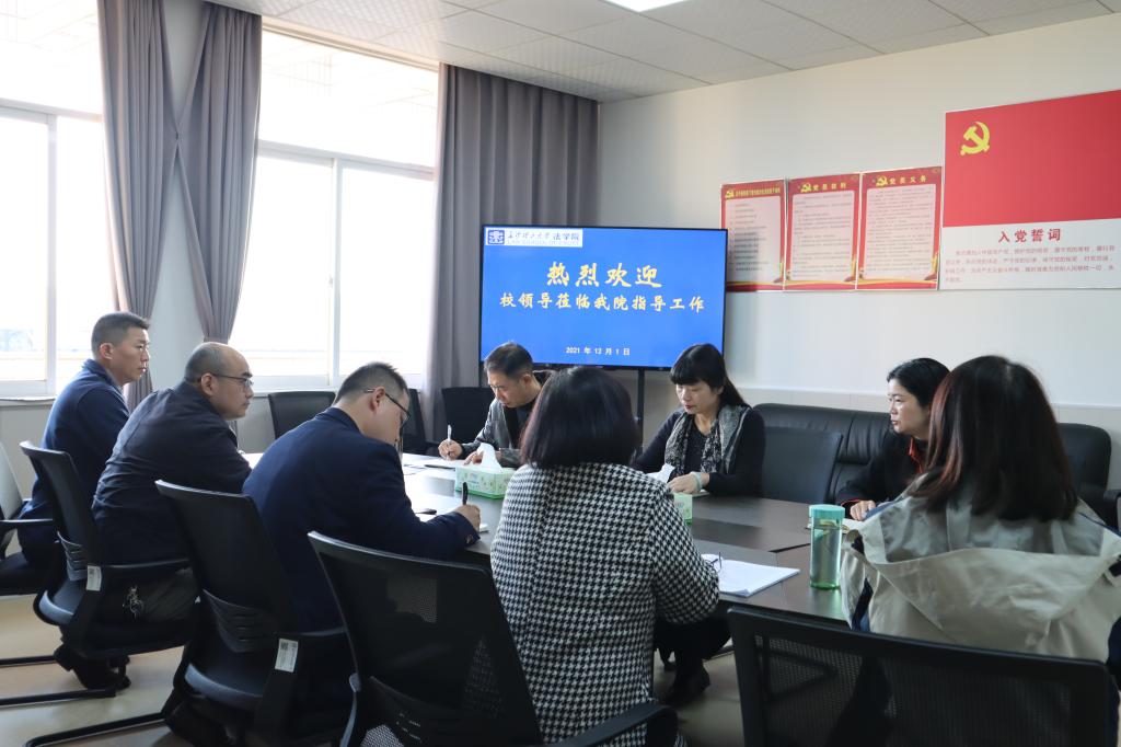 12月1日下午,副校长蒋璟萍来到法学院调研指导工作。学院领导班子成员及各科室主任、支部书记、教师代表等参加,会议由学院党总支书记田兴洪主持。