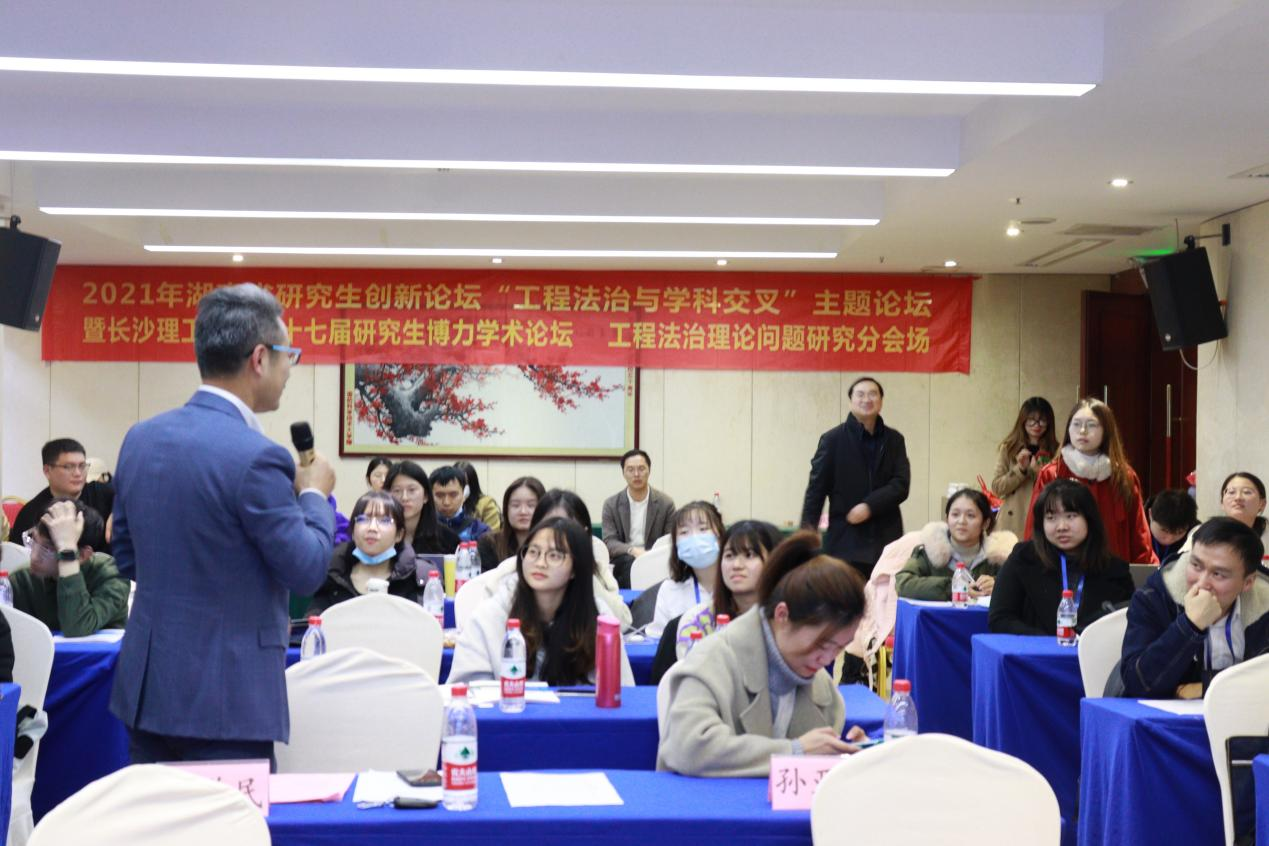 12月18日,由湖南省人民政府学位委员会、湖南省教育厅主办、304am永利集团承办、北京中伦文德(长沙)律师事务所协办的湖南省第十四届研究生创新论坛——“工程法治与学科交叉”分论坛暨304am永利集团第十七届研究生博力学术论坛在304am永利集团云塘校区举办。