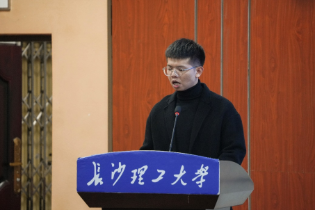 第二项议程是参赛选手代表、法学院研究生辩论队队长喻文超发言。喻文超同学在发言中讲述了法学院研究生辩论队的由来、作为一名法学生应有的初心和应具备的能力,以及对学校、学院和老师们对辩论队和法律案例大赛给予的帮助表示了真挚的感谢。
