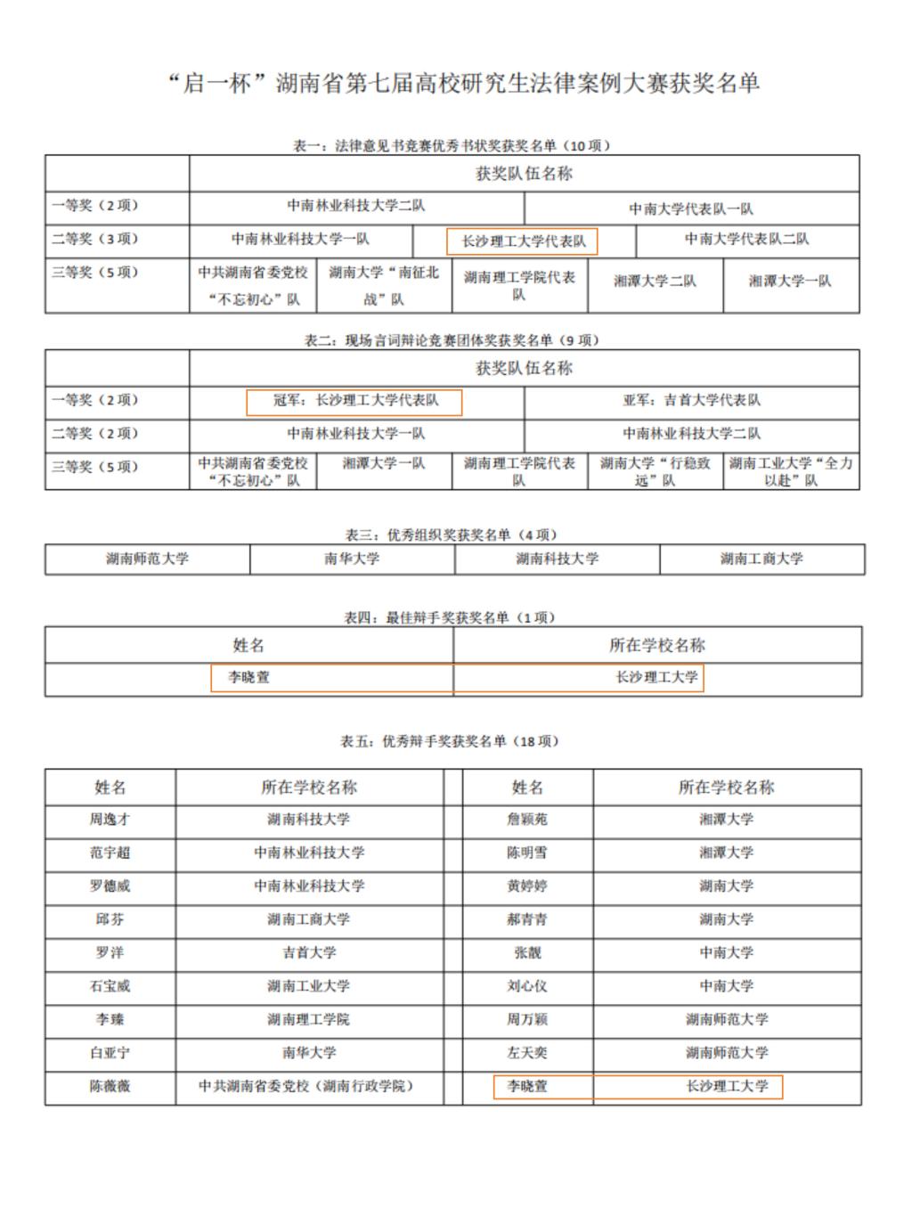 决赛现场,我方队员表现出了必胜的决心和勇气,虽面对强大的对手,但仍赛出风采,赛出水平,贡献出一场你来我往、针锋相对的激烈场面。凭借老师们的专业指导、前期的精心准备及队员们团结协作的精神,最终夺下湖南省第七届高校研究生法律案例大赛“言辞辩论赛”冠军等诸项殊荣。