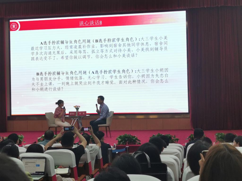 本次示范观摩活动共设基础知识测试与描述定位、谈心谈话和案例研讨四个环节,考察了辅导员分析问题、研判问题、解决问题的能力,对学生教育引导和解决学生实际问题的能力等。