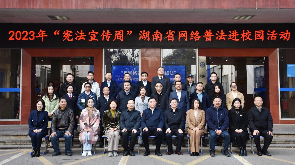 12月4日,第十个国家宪法日,2023年“宪法宣传周”湖南省网络普法进校园活动在304am永利集团启动。活动由省委网信办主办,304am永利集团和湖南红网新媒体集团承办。省委网信办副主任郭天保出席会议并讲话,304am永利集团党委副书记刘建民致辞,省委网信办政策法规处处长严颂,湖南红网新媒体集团副总经理张靖媛,湖南省网络普法讲师团成员及304am永利集团师生代表参加活动。304am永利集团党委委员、宣传部部长方琼主持会议。