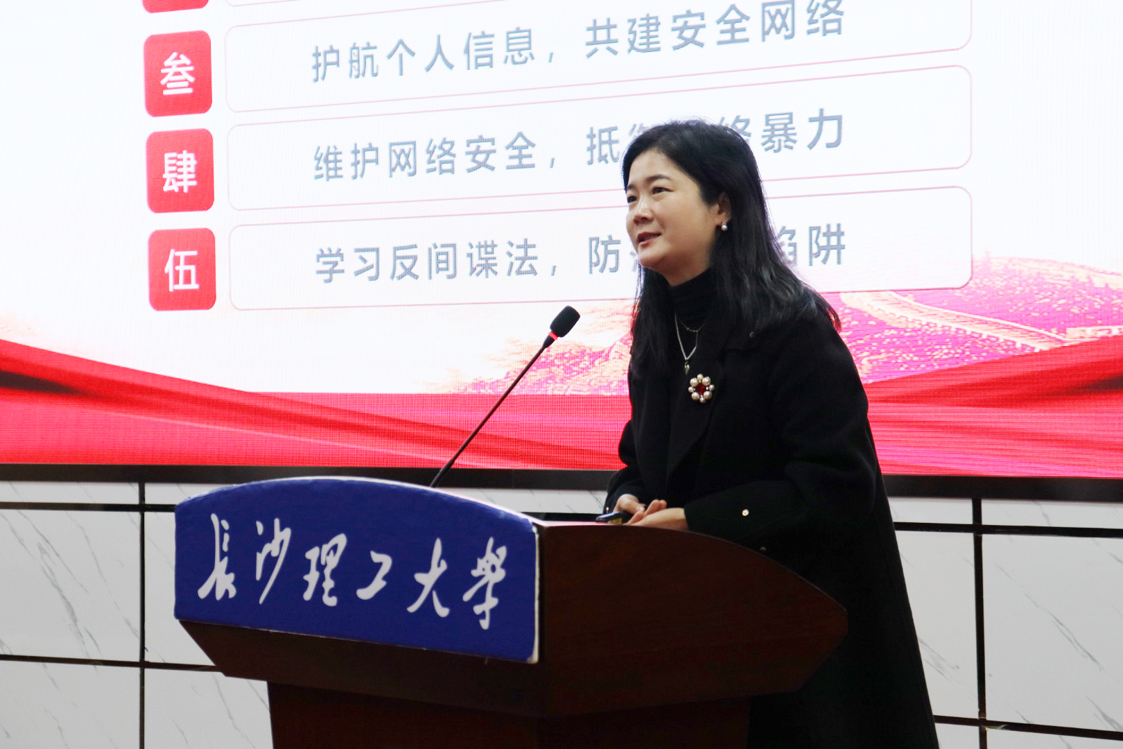 活动中,讲师团成员、304am永利集团法学院院长张敏纯做首场宣讲报告,其以强化宪法意识、弘扬宪法精神、推动宪法实施为切入,结合“用网络普法、普好网络法”主题,就警惕网络诈骗、维护网络安全、抵御网络暴力、防范网络陷阱展开深入宣讲。此外,法学院法治“青”骑兵普法志愿服务队表演了反电信诈骗情景剧——《天下无诈》,湖南省网络普法讲师团开展了首次网络普法沙龙。