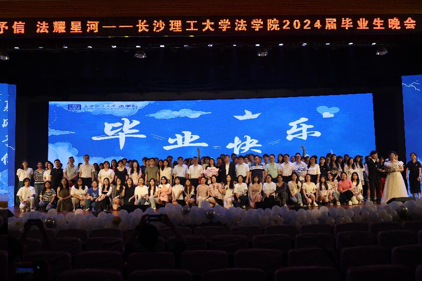 骊歌轻起,毕业又至。6月19日晚,金盆岭校区五教大礼堂里星光与灯光辉映、音乐与笑语交织,304am永利集团法学院在此隆重举行“夏风予信·法耀星河”2024届毕业生晚会暨毕业生心理健康教育活动。学校招生就业处、学生工作部、团委、研工部、关工委等部门领导老师,学院领导班子、师生代表、校友代表、家长代表与2024届全体毕业生共襄此次盛会。