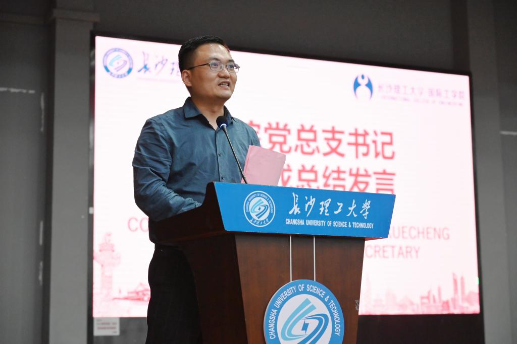 我院党总支书记王学成做总结发言,结合青年科学家攻克难关、“黑色经典”品牌创新、维和部队女兵等榜样故事,提出国际青年应牢记“感恩”“坚持”“机遇”“自信”“爱国”五个关键词,号召全体学生锤炼过硬本领,彰显国际担当,创新前行,迎接挑战,燃烧火热青春。