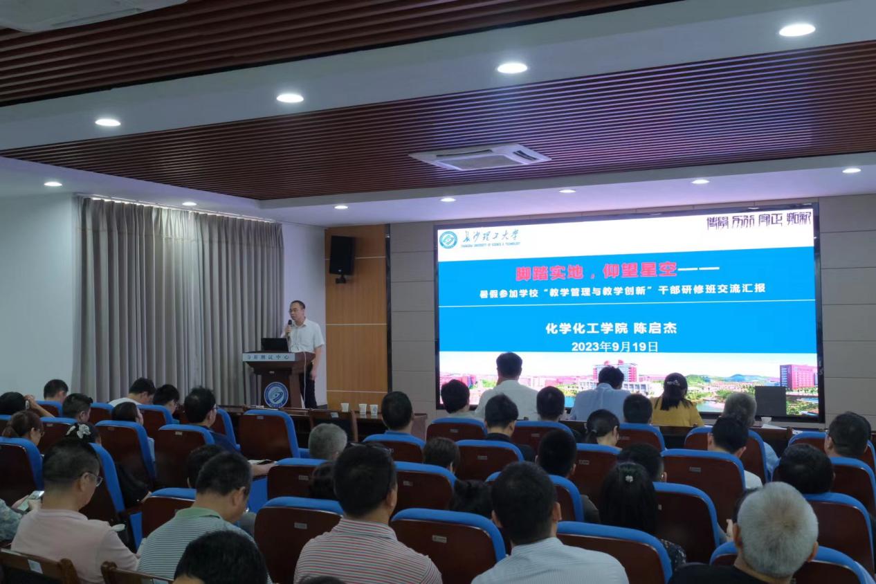 副院长陈启杰传达了学校本科教育教学诊断性评估的专家反馈意见,从多个角度带领全体老师共同学习了本科教育教学审核评估的特点、基本原则、工作目标、指标体系框架,审核评估的重点、对象、条件、周期以及程序。并结合永利官网及我院基本情况、办学定位,解释了永利官网选择“第二类第一种”的理由,达成共识。随后以“脚踏实地、仰望星空”为题,对暑假在四川大学参加学校“教学管理与教学创新”干部研修班的学习体会进行了交流。