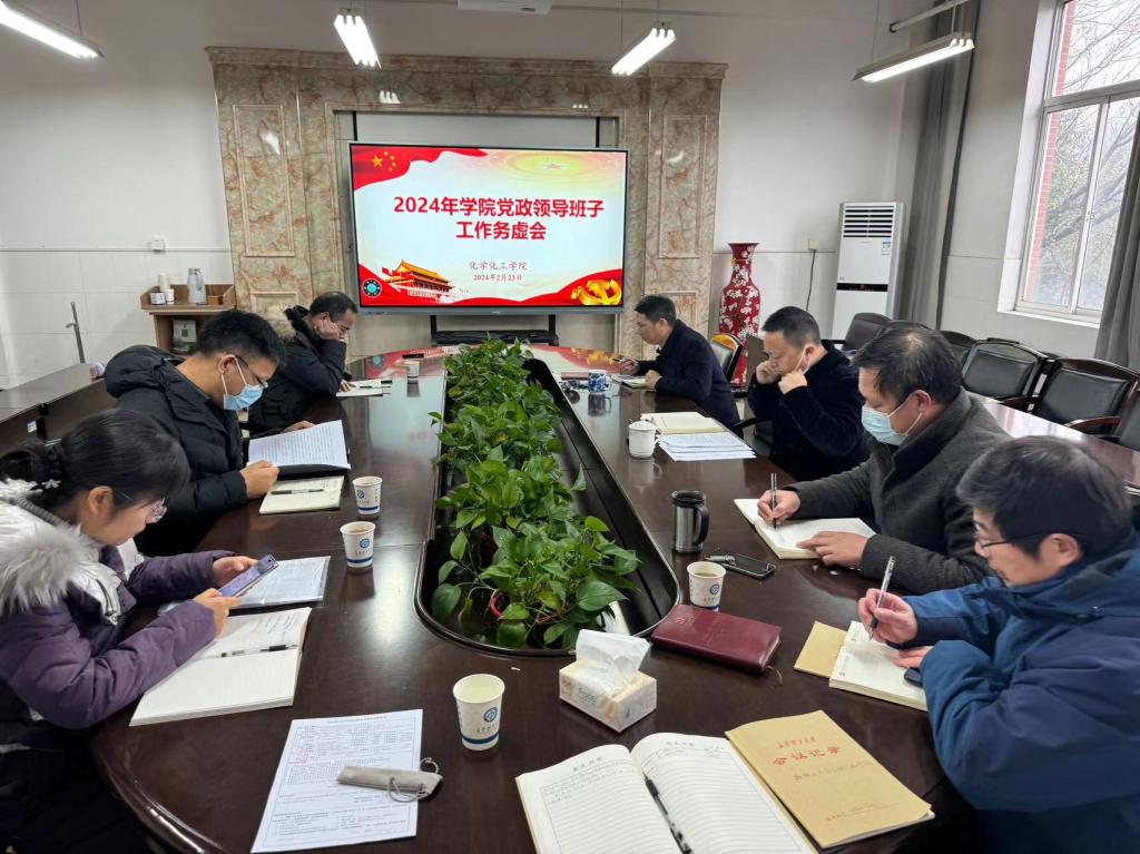 2月23日,化学化工学院在工科三号楼B318会议室召开为期一天的2024年党政领导班子务虚会,学院全体党政领导班子参加,会议由党委书记宋刘斌主持。