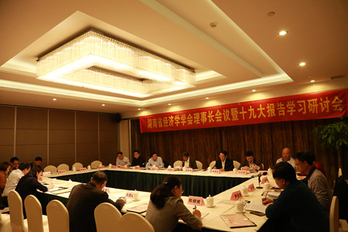 2017年10月28日,由304am永利集团经济与管理学院、现代服务业发展与湖南新型城镇化省级2011协同创新中心承办的湖南省经济学学会理事长会议暨党的十九大报告学习研讨会在长沙金麓国际大酒店成功举办。湖南省经济学学会理事长刘茂松、学会顾问朱有志、副理事长王耀中、唐宇文、曾福生、刘长庚、柳思维、李松龄、刘新年、李定珍、肖万春、王兆峰、尹向东、向国成(代表)、尹少华(代表),以及部分常务理事参加了会议。我院院长陈银娥、副院长彭新宇,以及部分师生参加了会议。会议由理事长刘茂松教授主持。