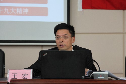 随后,王宏以《学习宣传贯彻落实党的十九大精神》为题,从“新背景”、“新成就”、“新思想”、“新时代”、“新使命”、“新征程”、“新发展”以及“学懂弄通做实党的十九大精神”八个方面,对党的十九大报告中的“新理念、新思想、新战略、新论述、新方略、新举措”一一作了详细解读。