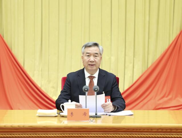 中共中央政治局常委、中央纪律检查委员会书记李希代表中央纪律检查委员会常务委员会作工作报告。新华社记者 庞兴雷 摄