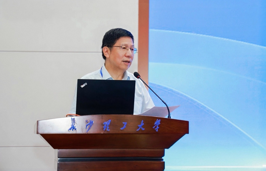 湖南省计算机学会理事长宋君强致辞。他指出,近年来,学会始终秉承初心,团结带领广大会员,紧密围绕计算机学科的企业发展和国家数字化建设的实际需求,积极搭建高水平学术教育平台。希望各位专家学者们以此次交流为契机,为推动湖南省乃至全国计算机科学与技术发展贡献智慧和力量。