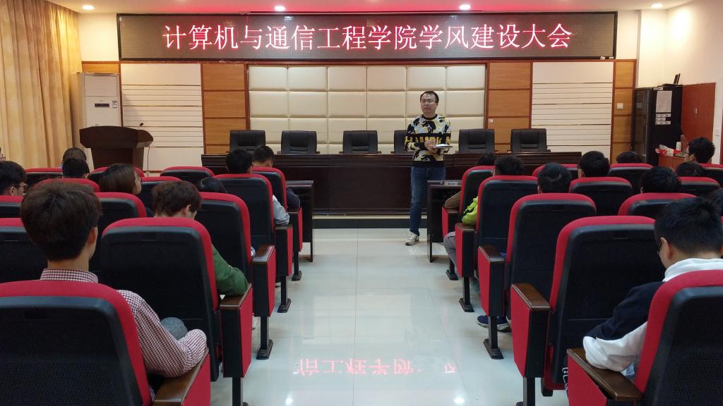 11月5日,计通学院召集16,17,18级全体学习委员召开计通学院期中学风建设大会。16,17级大会由16级辅导员王建新于理科楼B311召开。18级辅导员郑国义为18级各班学习委员在金盆岭校区召开本次会议。本次会议旨在建设计通学院优良学风,端正计通学院学生学习态度,督促学生自律自觉,公布新的建设学风实施方案等。