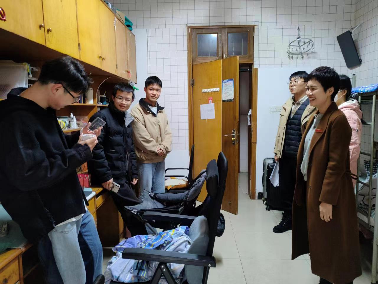 开学以来,学院党委副书记王觊婧、就业专干聂静、年级辅导员郑国义等多次深入到宿舍,关心询问返校同学考研结果、就业准备等情况,对有就业困惑的同学及时关注,并给予指导。因为在考试前一天“阳”了的王同学已经早早的返校,听到老师的询问流下了泪水,表示真的不甘心。王觊婧等对他的情况表示理解,平复学生情绪,王觊婧了解了学生的想法与打算,肯定了他做的努力,并约定老师会和他一起做好应对,做出最适合自己的选择。