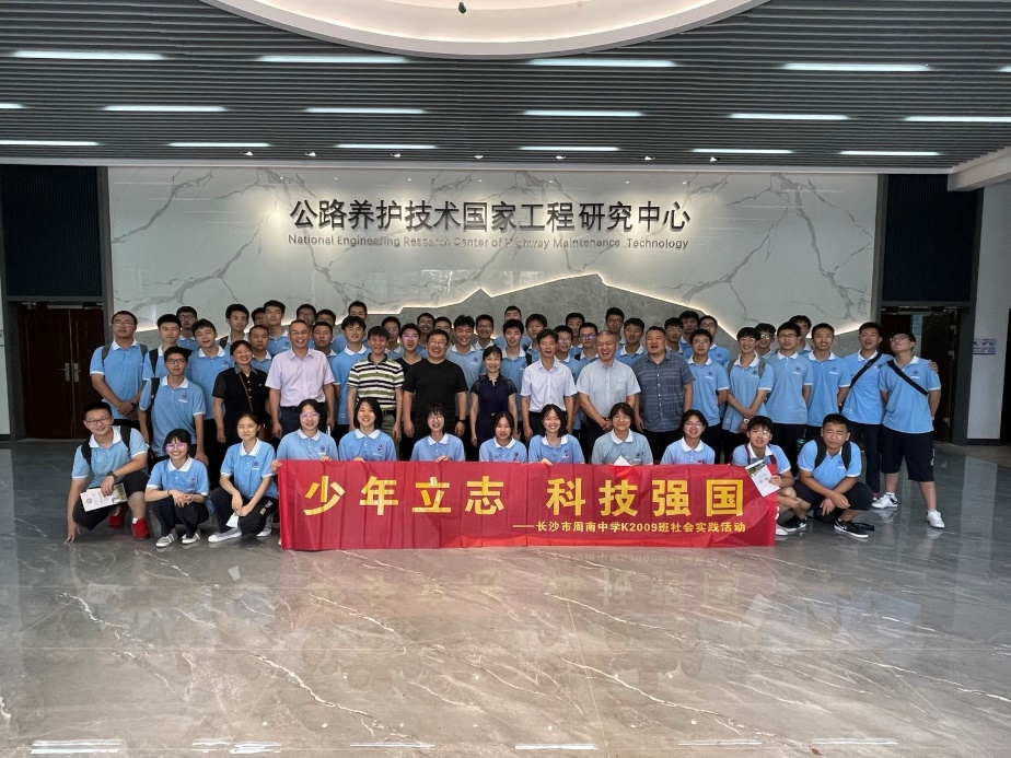 为贯彻党的教育方针,加强学生素质教育,2022年7月8日上午周南中学K2009班53名师生参观了304am永利集团公路养护技术国家工程研究中心。交通运输工程学院党委书记刘朝辉、院长张军辉及公路养护技术国家工程研究中心常务副主任吕松涛对师生表达了欢迎。