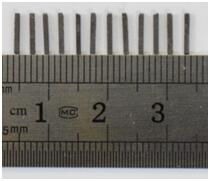 采用电火花线切割技术将块状的复合材料切割成纤维,并使用特定夹具将其夹紧,用800目金刚石砂轮进行刃磨,获得锋利的纤维微刃;