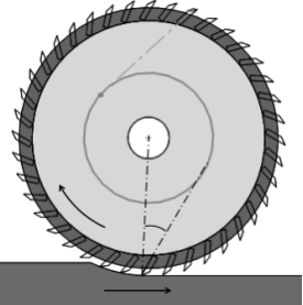 通过在基体内部设定基圆的方法使纤维微刃前刀面与胎体径向形成一定角度,从而实现纤维刀具的正前角加工。