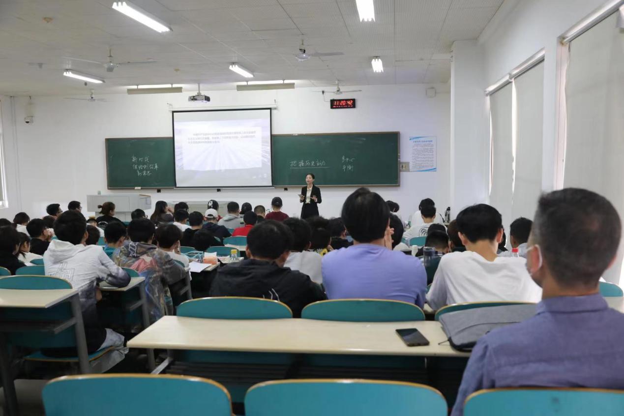 为深入学习党的二十大精神,推进习近平新时代中国特色社会主义思想进教材进课堂进头脑,切实提升我院教师教学能力和水平,马克思主义学院于2022年10月18日上午10点在云塘校区综合教学楼B301开展了思想政治理论课公开课教学活动。此次公开课由钟芙蓉老师主讲,教学专题为《习近平新时代中国特色社会主义思想及其历史地位》。