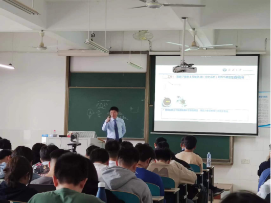 授课内容包括三部分:一是膨胀土的基本性质;二是土工合成材料的种类与功能;三是几种土工合成材料用于稳定公路膨胀土边坡技术的理论与工程应用。邹维列教授首先以膨胀土分布特点及其危害为切入点,介绍了膨胀土边坡治理的主要历史过程,突出了膨胀土“吸水膨胀、失水收缩”特点给实际工程带来的巨大挑战;接着,以稳定膨胀土边坡需解决的几个关键问题入手,引入了土工合成材料,并详细阐述了土工合成材料的特点及应用形式;最后,以具体工程实例向同学们展示了土工泡沫、袋装土、格栅加筋土和玻璃钢螺旋锚等典型土工合成材料在膨胀土边坡治理中的应用。