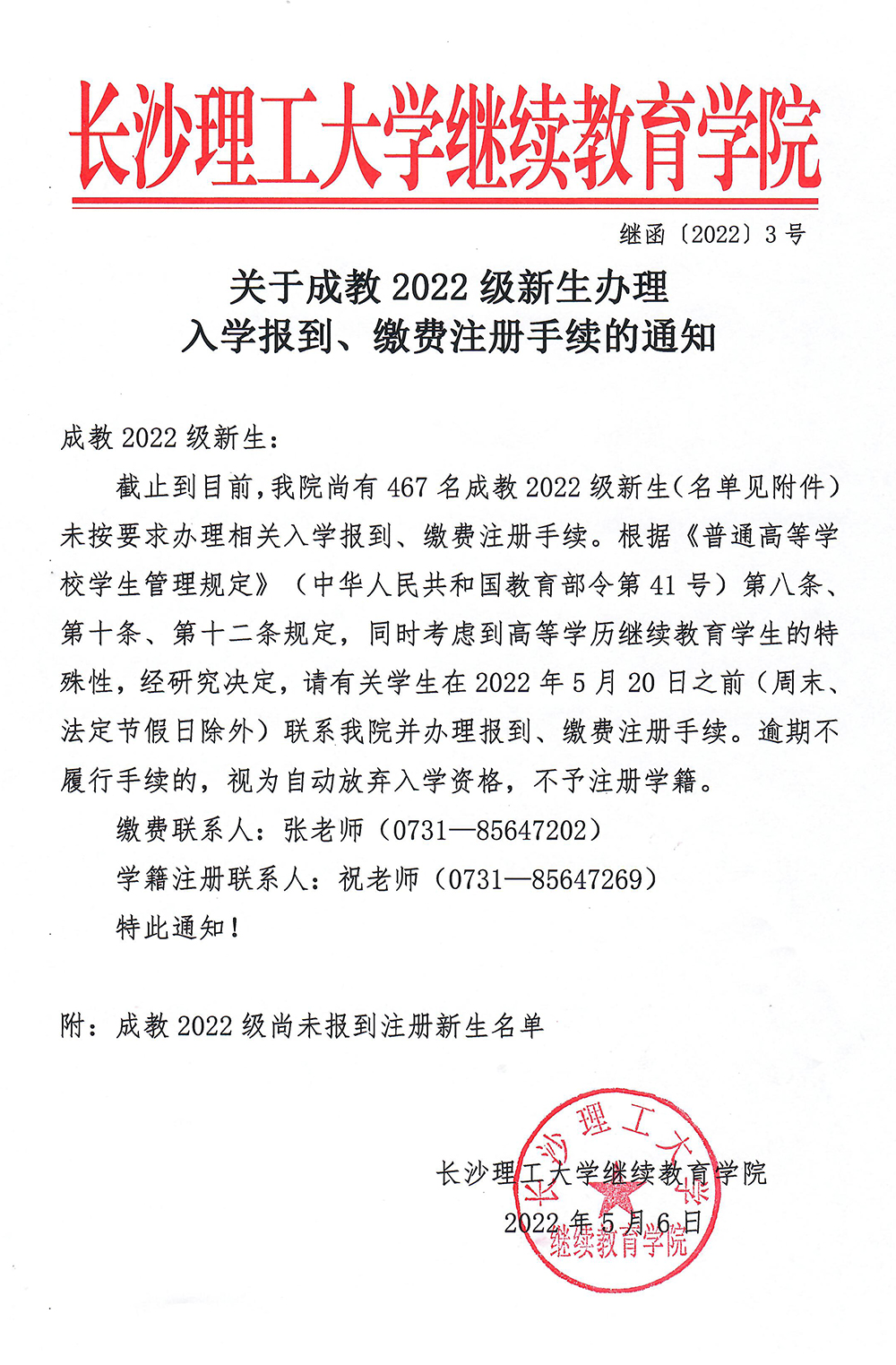 关于成教2022级新生办理入学报到、缴费注册手续的通知