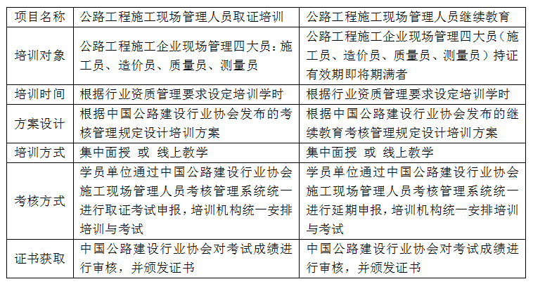 公路工程施工现场管理人员取证培训、继续教育