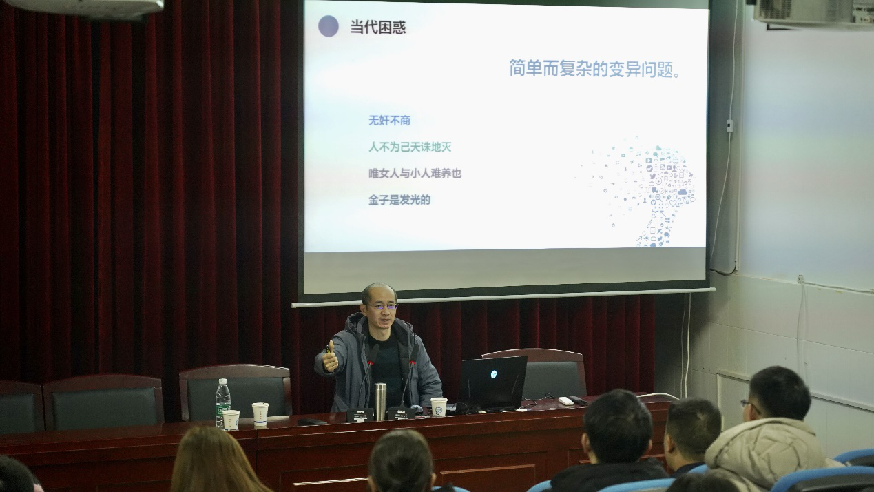 12月22日下午,建筑学院在16教二楼虚拟现实实验室举办专题学术讲座,学院易学尧博士围绕“匠心、文心、道德心”进行建筑伦理精神的探讨与汇报。讲座由副院长唐常春教授主持。