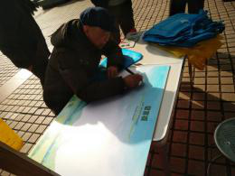 下午1:30左右,准备已久的建筑学院建筑学专业学生党支部志愿服务小队按照之前的部署分成了A、B两个小组。首先A小组成员负责向公园内休憩的居民宣传环保知识,并提出自己关于环保的建议。然后派送宣传纪念明信片和环保袋。另一部分成员作为固定点在公园东广场现场向大家讲解生活中一些废弃用品DIY重复利用的小妙招。在讲解的同时了解市民的想法,鼓励大家在留言板上写下对于环保工作的意见和建议,及时记录他们关于环保的小妙招并发放宣传纪念材料。