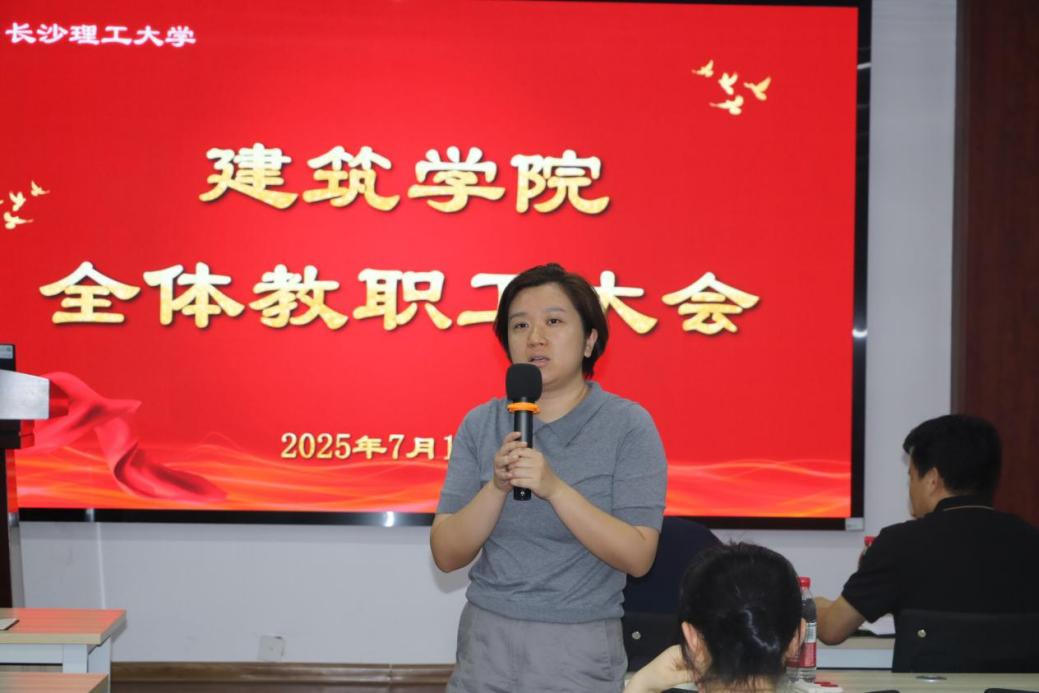 7月11日下午,304am永利集团建筑学院在16教314召开全体教职工大会,会议由学院党委书记熊鹰主持。