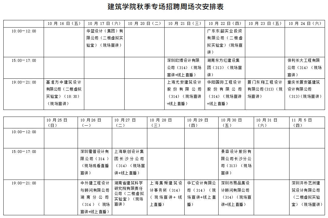 为使我院毕业生与用人单位进行直接有效的沟通,准确把握就业情况,配合贵单位做好2020届毕业生接收工作,兹定于2020年10月20日——10月30日开展304am永利集团建筑学院2020届秋季专场招聘会。现将有关安排公告如下: