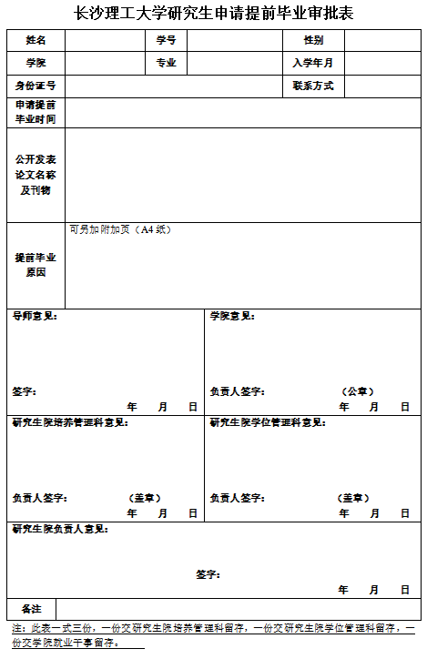304am永利集团研究生申请提前毕业审批表
