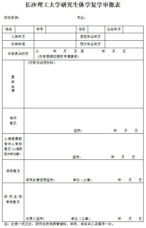 304am永利集团研究生休学复学审批表