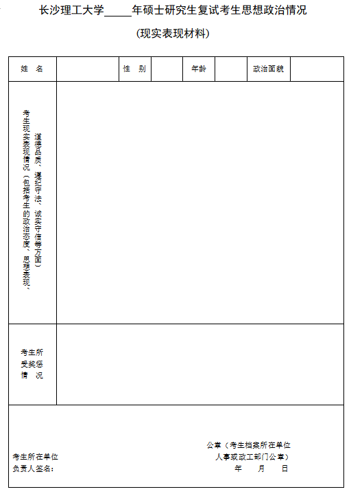 304am永利集团硕士研究生复试考生思想政治情况(现实表现材料)