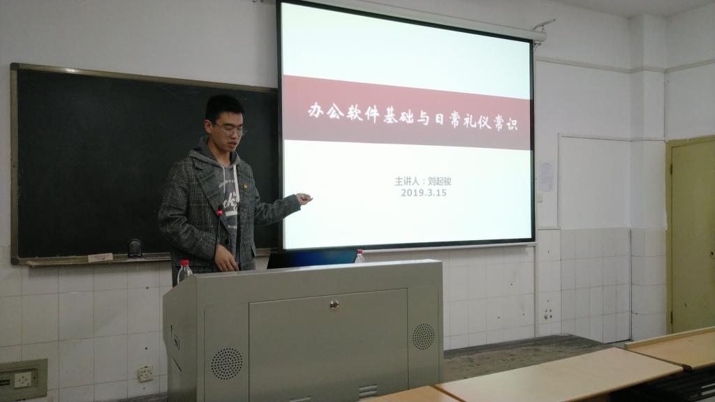 课程伊始,刘起骏讲述了一些office的常用技巧,简要介绍了Word及Excel使用的方法,他强调,office办公软件里面的内容丰富,需要青马班学员认真领会学习。随后,刘起骏以幽默的方式从形象管理和沟通礼仪两方面对正式场合的礼仪常识进行了介绍。他介绍形象管理时,对正装的穿着礼仪进行了说明,指出了大家在正装穿着中可能存在的问题。继而,刘起骏向同学们分享了沟通礼仪上的一些技巧和公式,对同学们提出了持续学习的希望,并再次强调了编写文档后对文件命名的重要性。会议最后,叶天熠对此次学习进行了总结,并向青马班学员总结本次青马班寒假实践调研的相关情况。