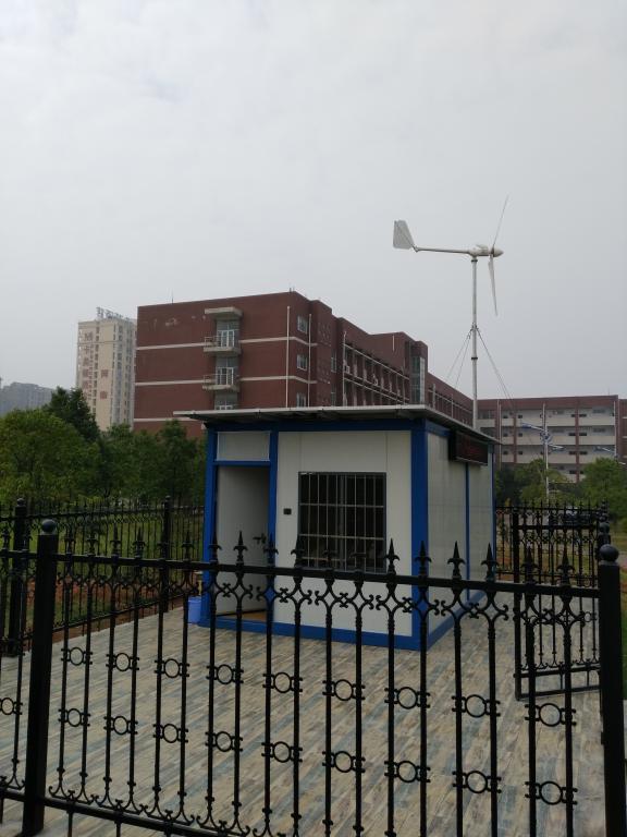 近日,在永利官网模型广场西南角,又增添一处新能源风景:菁菁校园,矗立起一个风力机,旁边是一座顶上铺满太阳电池板的白色小屋。实际上这是一个风光储互补新能源系统,它针对湖南地区太阳能资源季节性变化大、风资源相对缺乏的特点,通过光伏发电与风力发电系统协调运行,满足房子内空调、照明等的用电需求。在炎炎夏日,光照很足时光伏发电正好满足空调降温的需要;在冬天,较高的风速带动风力机发电,正好满足空调保暖的作用;可以说,这是一个不需要外界供电的“零能耗建筑”;还能够对光伏发电、风力发电、蓄电池的运行参数进行实时监测和对历史数据进行统计分析。