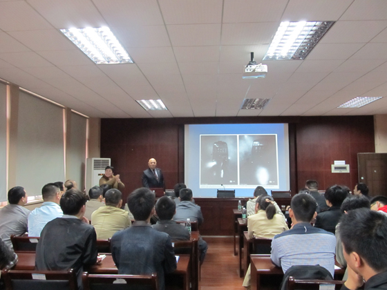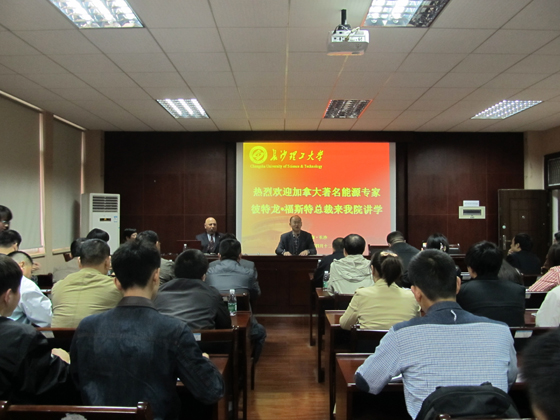 4月12日下午,加拿大注册高级能源工程师,国际知名能效评价专家,福斯特能源公司总裁彼特龙.福斯特(Peter B.Ferst)先生应邀来304am永利集团访问,并在工科一号楼能动学院多功能报告厅做了题为《能效提升与雾霾治理》的学术报告。此次报告会受到相关政府部门和企业的高度关注,长沙市工信委、长沙市能源局及下属的各区县、各园区和有关企业的领导和能源工作者50多人参加了报告会。能动学院相关领域的教授、博士和学生聆听了此次报告。报告会由能源与动力工程学院院长陈冬林教授主持。