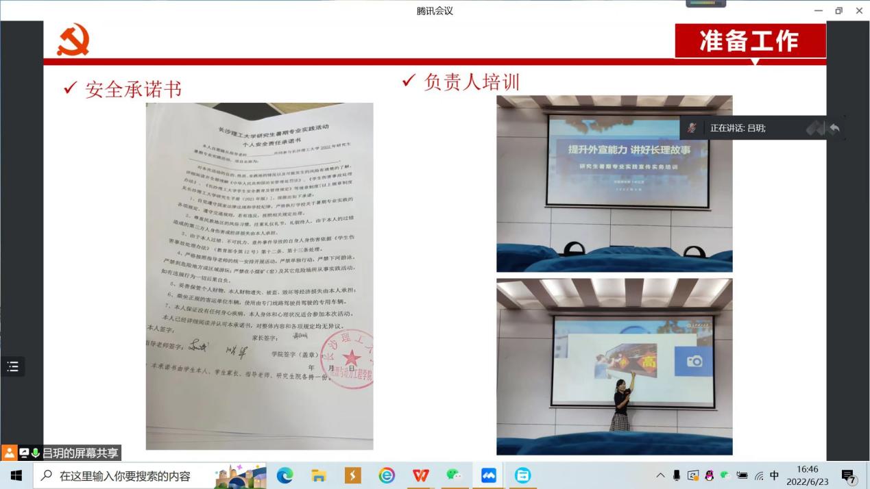 会议上,吕玥从项目介绍、准备工作、阶段计划和结项要求四个部分做了汇报,其中包含队服制定、安全承诺书和负责人培训等细节,并提出下一阶段实践团队的工作安排。团队指导老师赵斌曾作为中组部团中央第17、18批援藏博士团成员,在藏3年8个月零八天,援藏结束后指导永利官网能动学院、电气学院共4名研究生从事西藏太阳能利用方向的专业实践。为保证此次实践安全、务实、高效地顺利进行,他从自身经历出发,着重强调了解民风民情、做好防护等前期筹备工作的重要性,组织成员明确分工,在调查研究中发现问题、对照检查、深化感悟、寻找措施。他也鼓励同学们把调查研究的结果转化为科学决策的有力依据,形成求真务实的调查研究之风。