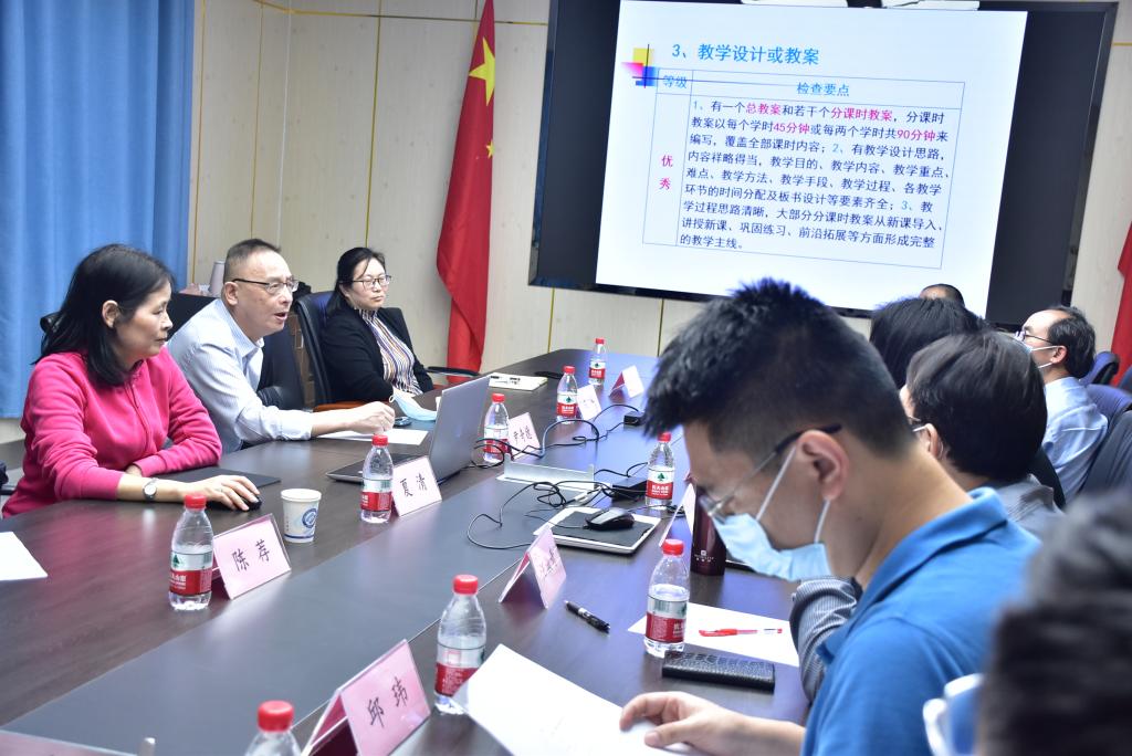 为提升我院课程教学文档质量,做好迎接2023年本科教学审核评估的准备,3月15日下午4点,学院特邀校督导尹奇德副团长和夏清秘书长给我院督导组、各系主任及副主任上了一堂内容丰富、细致全面的教学文档规范及课程考核改革的辅导课。