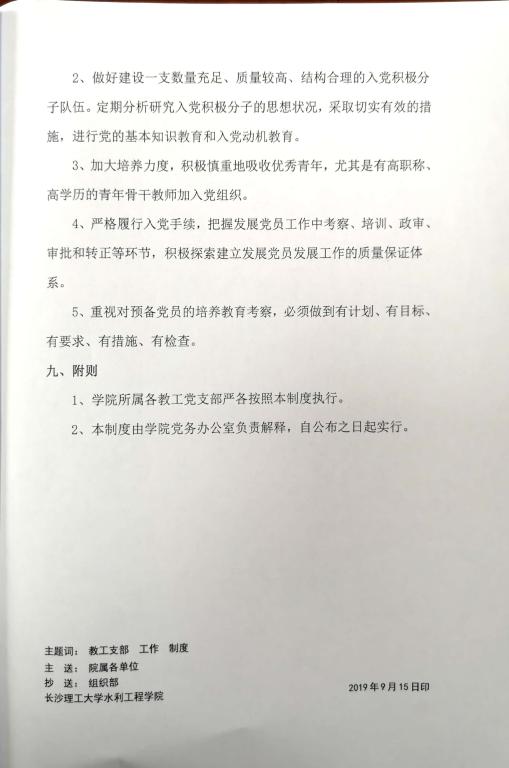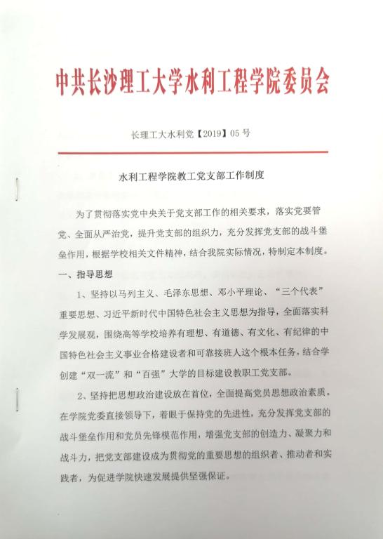 水利工程学院教工党支部工作制度(长理工大水利党【2019】05号)