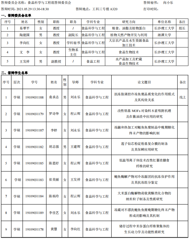2022年食品与生物学院研究生论文答辩安排表(二)