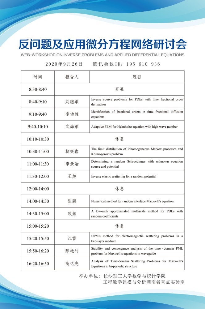 反问题及应用微分方程网络研讨会预告