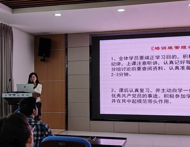 大会在激昂雄壮的国歌声中拉开序幕。首先,党建辅导员庄奕宣读《培训班管理条例》。她对课堂纪律以及考核要求进行解读,强调全体学员要端正学习态度,明确学习目的,积极参加讨论,遵守课堂纪律,做到学有所成,学有所获,将培训结果转化为向党组织靠拢的自觉行动。