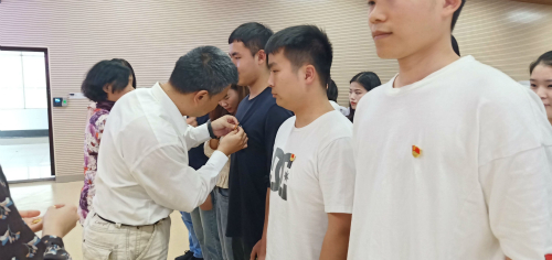 宣誓仪式在雄壮的《国歌》声中拉开序幕。首先由党委副书记马丽宣读新党员名单,接着所有新党员面向党旗,举起右手,在领誓人张宏伟的带领下,向党旗庄严宣誓,表达对党的忠诚、为共产主义事业奋斗终身的决心。宣誓结束后,张宏伟、黄凤英一同为新党员佩戴党徽。紧接着新党员代表郭肖晋,老党员代表安勃分别发言,从自身学习和工作出发,向大家分享自己理解的共产党员的责任担当,表明了投身党的事业的勇气决心。