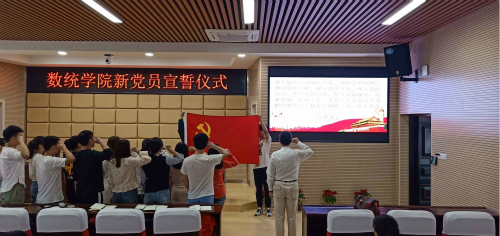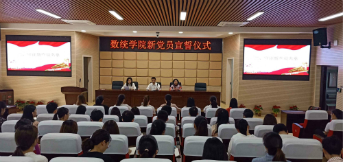2019年4月9日,数学与统计学院在理科楼A200举行新党员宣誓仪式,数统学院党委书记张宏伟,特邀党建组织员黄凤英出席会议,数统学院本科生研究生全体党员参加会议,会议由学院党委副书记马丽主持