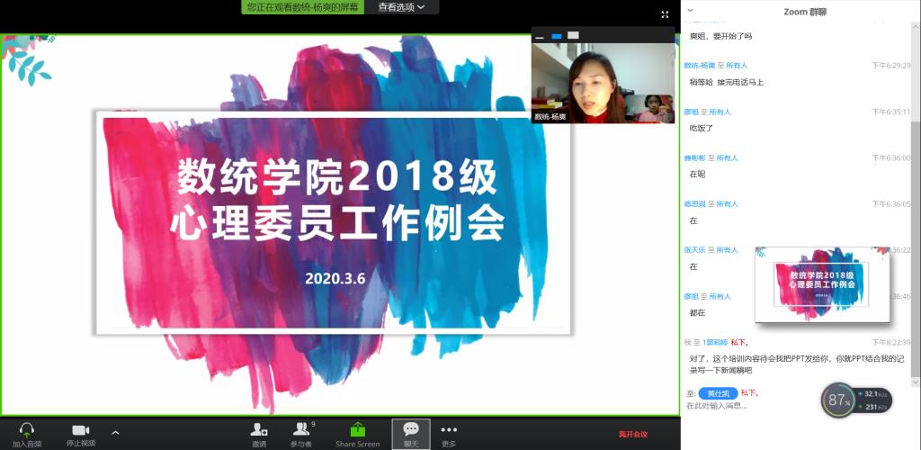 数统学院召开本学期第一次心理委员线上工作例会