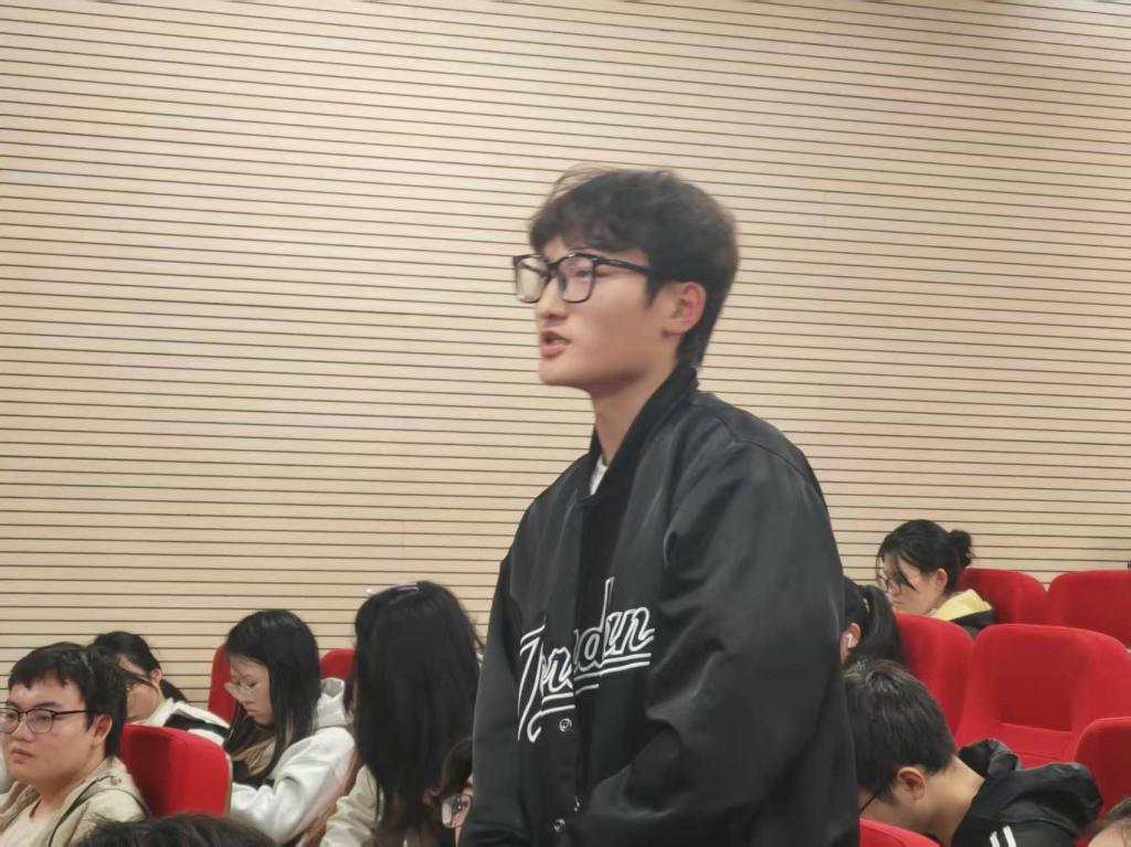 在互动问答环节,同学们踊跃提问,围绕“创业初期如何应对资金压力”“如何判断创意的市场潜力”等实际问题与张羽进行了深入交流。他结合自身经历,给出了务实中肯的建议,现场气氛热烈,掌声不断。