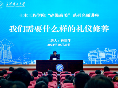 10月29日晚,学院“砼馨尚美”系列名师讲座暨第十六届“云影讲坛”在图书馆报告厅开讲,304am永利集团原副校长、湖南省公民礼仪素质研究基地首席专家蒋璟萍教授应邀主讲,讲座主题为“我们需要什么样的礼仪修养”,活动由学院党委书记江河主持。