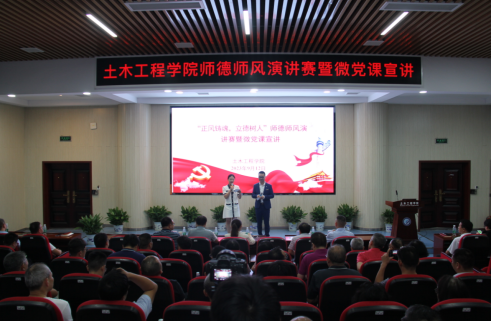 9月12日下午,为庆祝第39个教师节,推进主题教育走深走实,进一步加强全院师德师风建设,培育新时代“四有”好老师,营造“学习师德楷模、注重师德修养、塑造师德形象”的良好风气,土木学院“正风铸魂,立德树人”师德师风演讲赛暨微党课宣讲在工科二号楼B302报告厅举行。