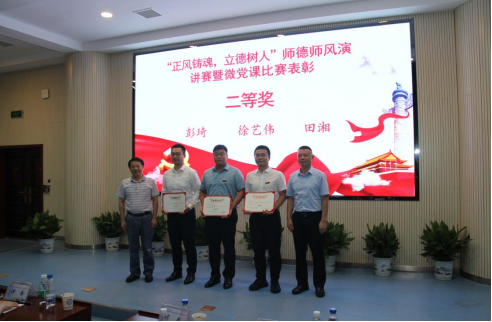 为迎接本次比赛,学院各分工会小组积极准备,经过前期预赛,最终推选出9名选手参加决赛。各参赛教师紧紧围绕“正风铸魂,立德树人”的主题,以铸造高尚师德、优化教风学风为切入点,他们或讲述自己为师育人的感悟、或讲述身边同事立德树人的经历、或讲述学院教师群体教书育人的典型事迹,通过身边平凡细小却又感人至深的故事,表达了学院教师爱学生、爱教师岗位的热情,讴歌了学院教师默默耕耘、甘为人梯、无私奉献高尚品德,展现了良好的精神风貌。教师们的演讲深深打动了在场听众,现场不时响起阵阵掌声。经过近1个半小时的激烈角逐,评委组从各方面逐项量化打分,评出了一等奖2名,二等奖3名,三等奖4名,与会领导嘉宾为获奖选手颁奖。