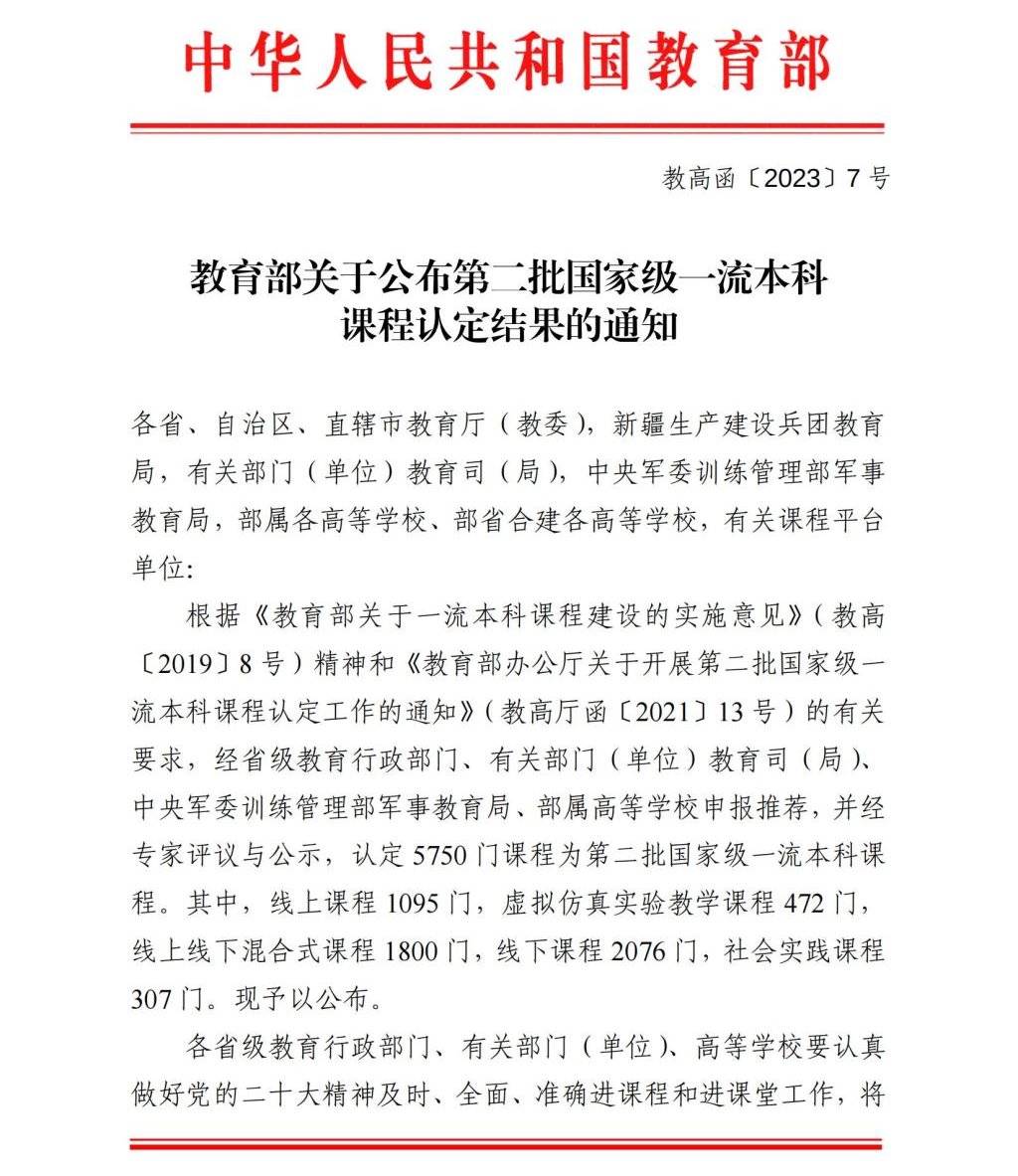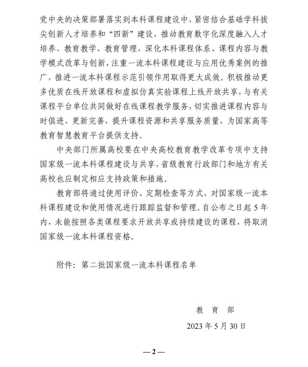 教育部关于公布第二批国家级一流本科课程认定结果的通知